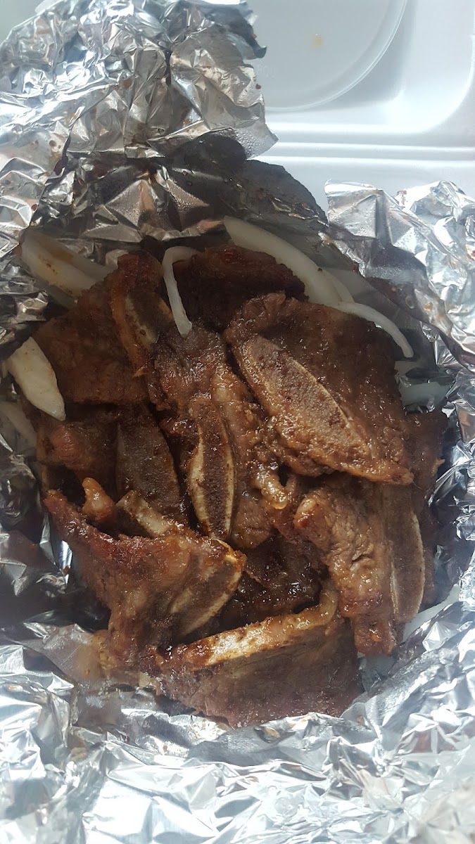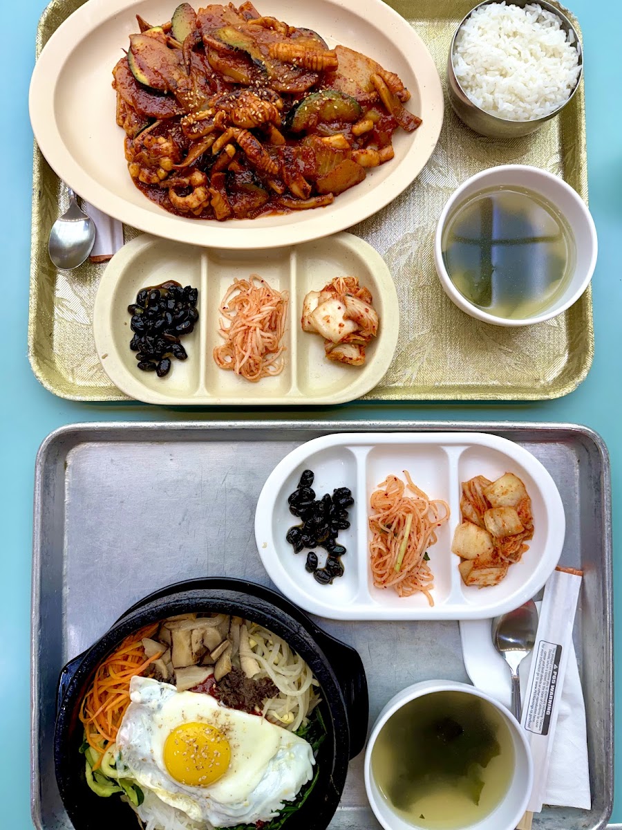 The Bibimbap is so good. Not much meat at all (ONE OUNCE) but the meal includes soup and kimchee.